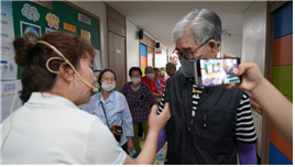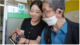 진행자와 어르신 사이에서 촬영하기