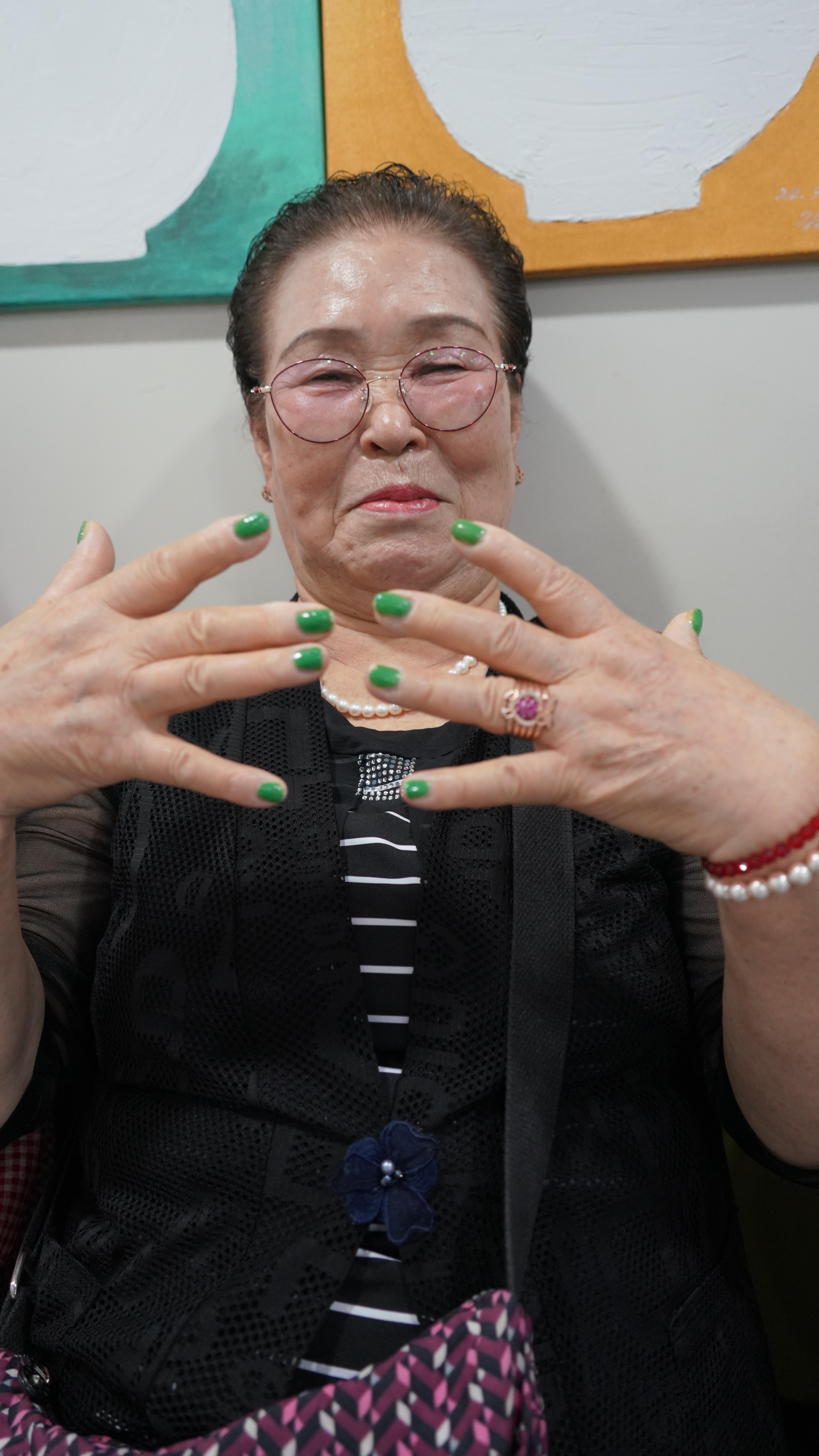 옆의 친구분은 네일아트 하셨네, 초록색으로..